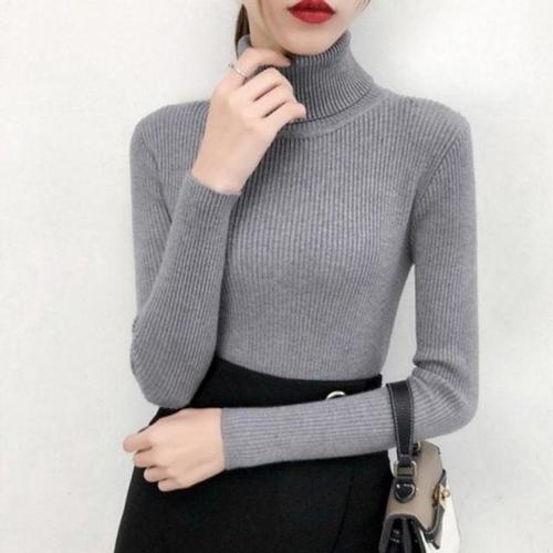 [옷자락] 여자 이너티 반목폴라 얇은 기본긴팔 무지 데일리 니트