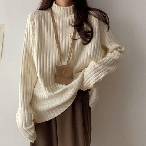 겨울 니트 골지 여성 스웨터 반팔 얇은 반폴라 빅 WFKZJP0