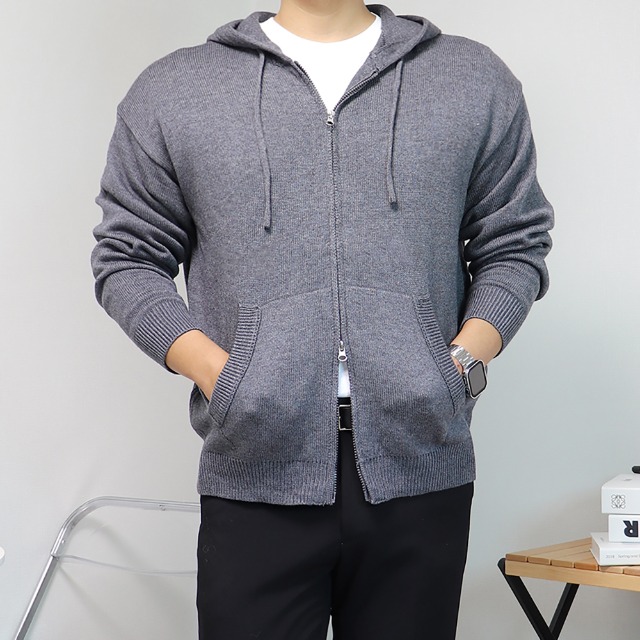 남자 워셔블 니트 후드 집업