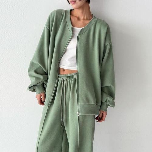 [다잇템_패션]여자 양기모 박스 카라없는 통바지 세트
