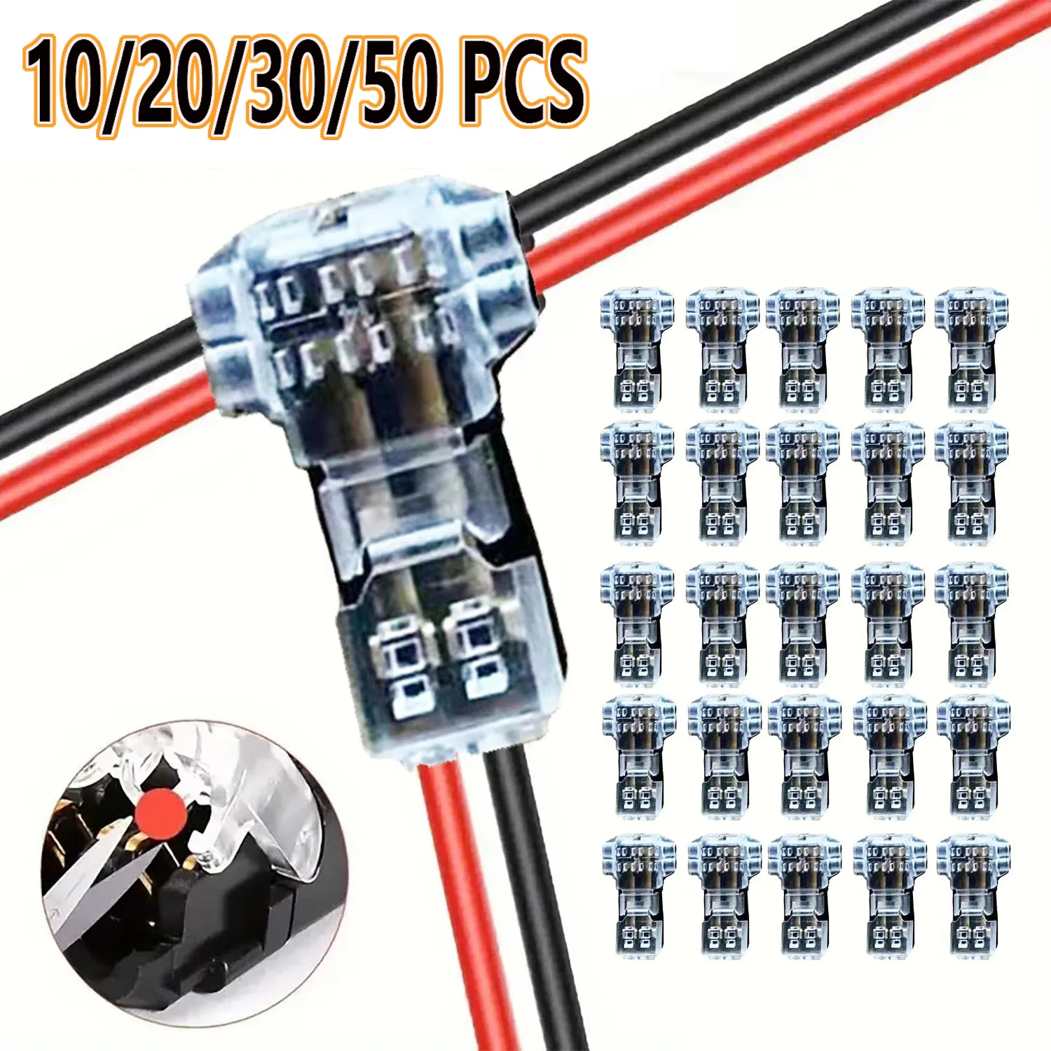 T형 1핀 저전압 와이어 커넥터 무납땜 스트리핑 불필요 빠른 접합 공구 없이 사용하는 범용 2방향 소형 터미널 조인트