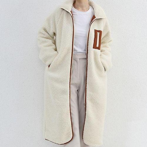 여성 롱 양털 덤블코트 포근 데일리 배색 포켓 뽀글이 겨울자켓 WFL8Z9Z