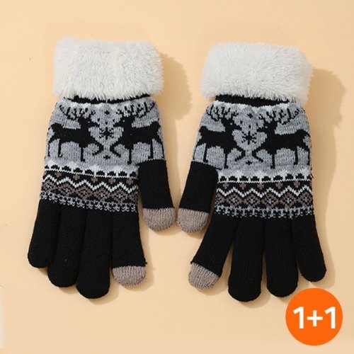 1+1 남녀공용 겨울 양털장갑 두툼한 스마트 터치 털 기모 니트 장갑
