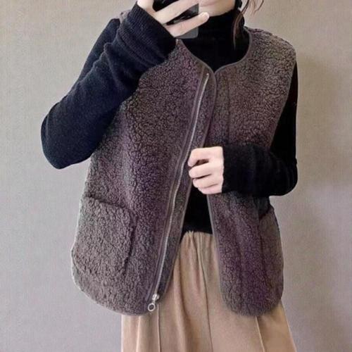 여성용 두꺼운 조끼 보온 내복 플리스 가을겨울 엄마 베스트 조끼 세련된 인조 양털 N-0049
