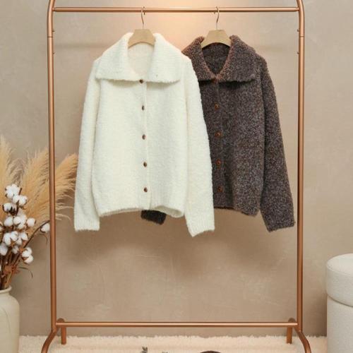 [다잇템]여성 버튼 빅사이즈 양털 세일러넥 가디건