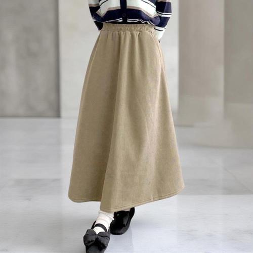 [옷자락] 여성용 따뜻한 겨울 코듀로이 플레어 롱스커트 양털안감