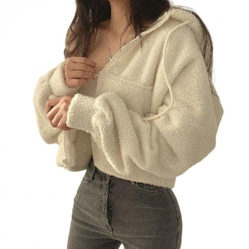 여성용 양털 후드 집업 점퍼 데일리 크롭 아우터 WFL9CC5