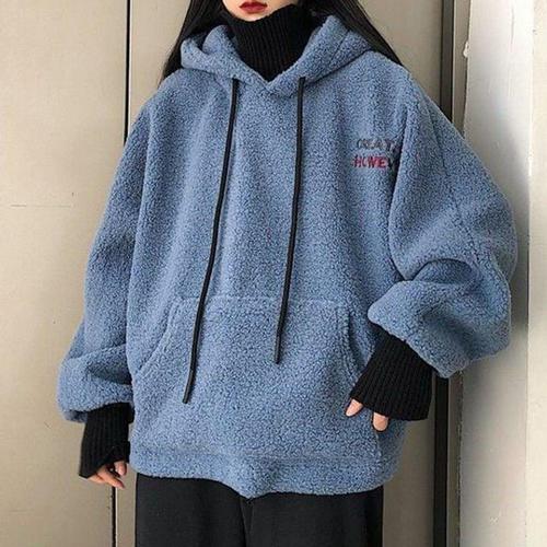 빠델 부드럽고 포근한 양면 양털 뽀글이 오버핏 후드티셔츠