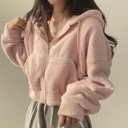[오너클랜]인기상품 여성 3컬러 귀여운 뽀글이 크롭 후드집업 양털자켓 [WFFZCSC_250918]