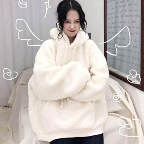 [엄지척]여자 무지 양털 뽀글이 후드 티셔츠 긴팔 겨울 오버핏_19600143_667501