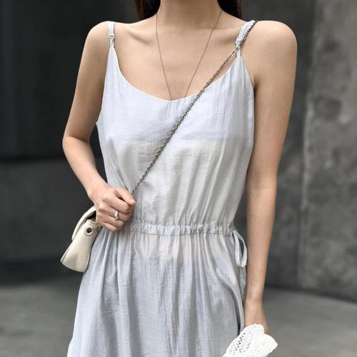 [다잇템]여성 잔주름 어깨끈 시원한 SS 롱 원피스