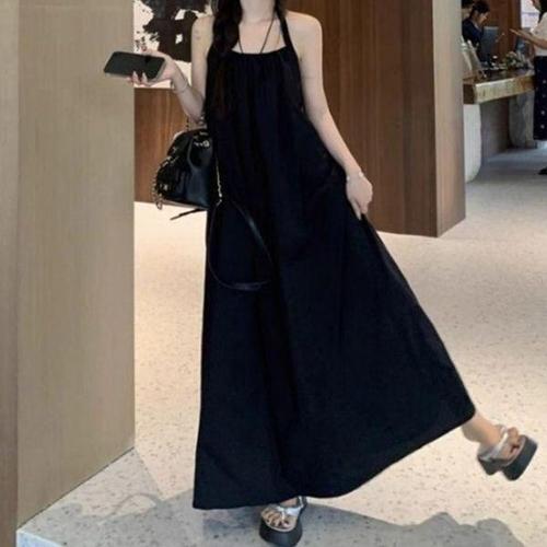 [옷자락]여성 홀터넥 롱 원피스 뒷트임 어깨끈 바캉스룩