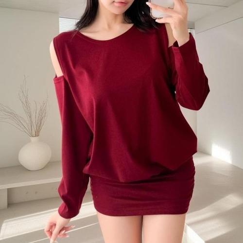 [옷자락]여자 어깨트임 루즈핏 골드링 셔링 미니 원피스