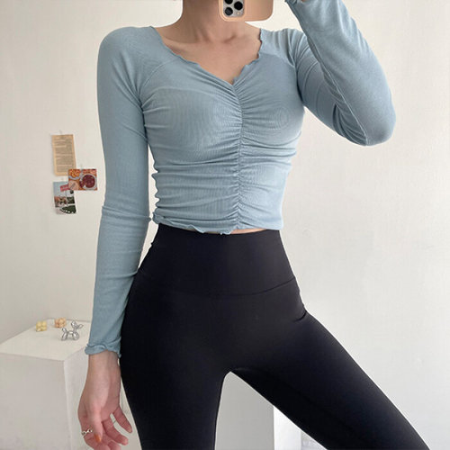 더클립 / 레이첼 날라리 브이넥 셔링 크롭 티셔츠 발레복