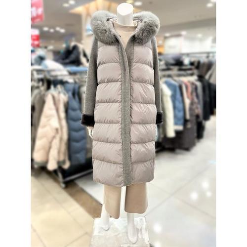 소고 세이브존01 모직 배색 후드 구스패딩 코트 TH4FA09_GR