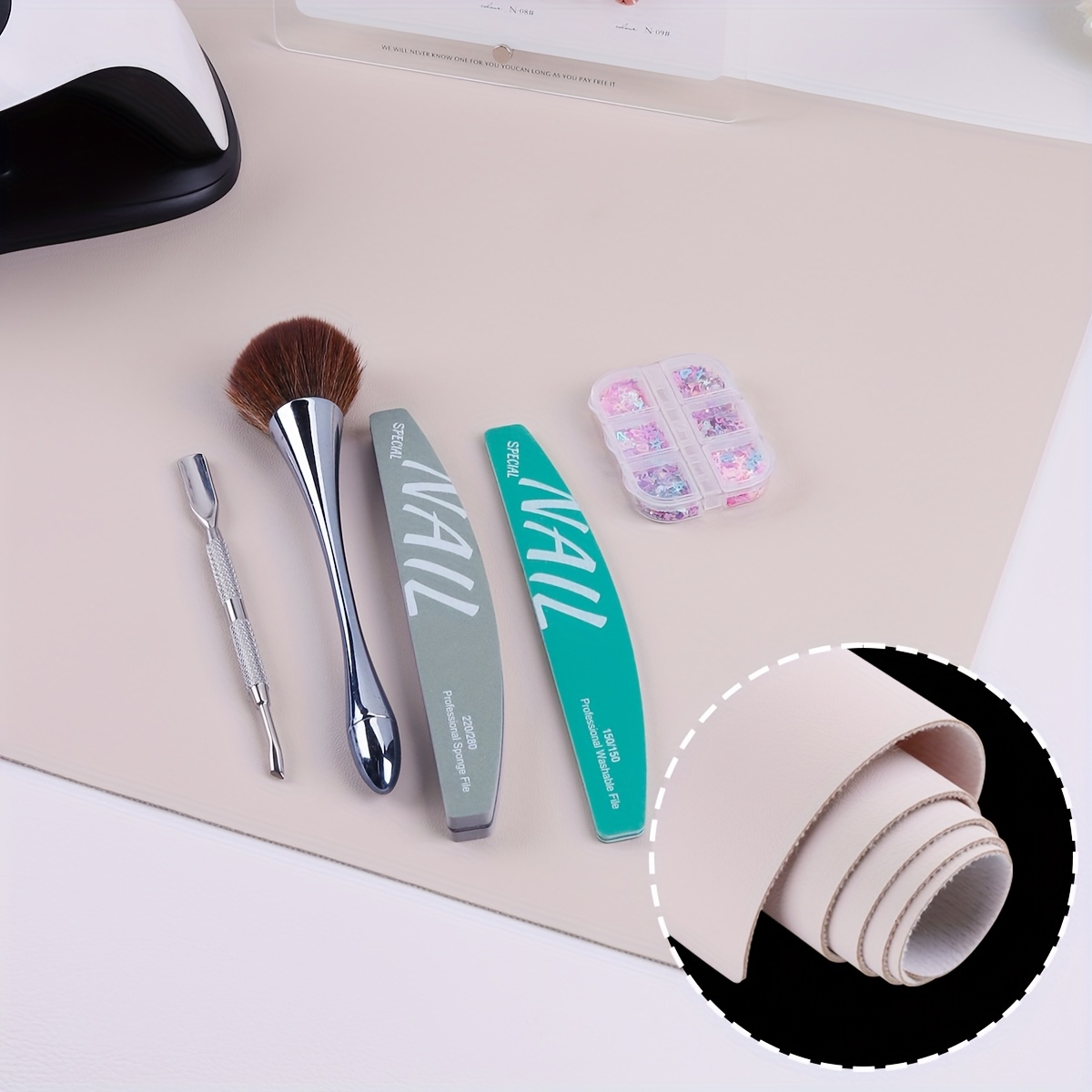 TEMU 전문가용 네일 살롱 & 홈 매니큐어 테이블 패드 - 방수, 접착제 방지, 열에 강한 비공극성 쉬운 세척 네일 아트 매트 - 화이트/베이지/핑크 색상 - 전기 불필요 - 네일 기술자 및 DIY 사용, 매끄러운 표면, 방수 소재, 뷰티 전문가를 위한 살론 정리 매트