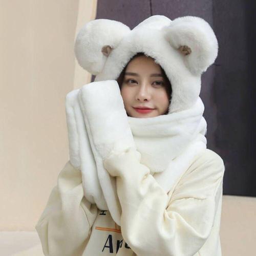 bns 3in1 곰돌이 털모자 방한세트(화이트) WFM0GYQ