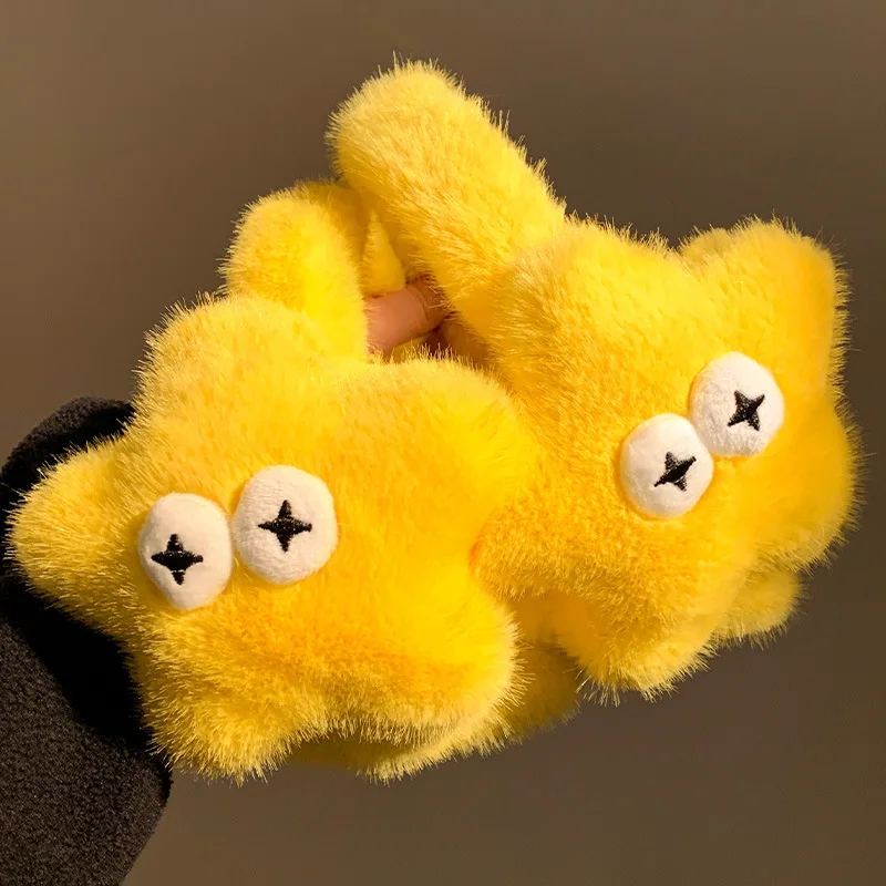 여성용 귀마개 귀여운 만화 노란색 별 플러시 달콤한 카와이 재미있는 창의적인 겨울 두꺼운 따뜻한 귀 보호 귀마개 소녀용
