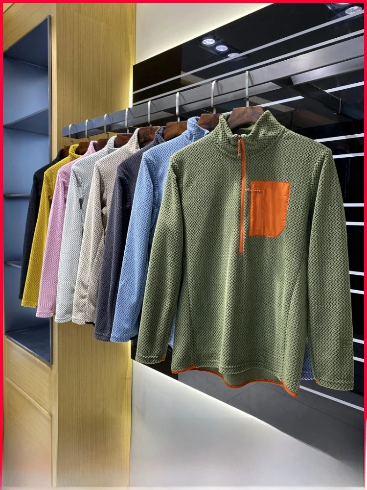 야외 활동 청소년 패션 플리스 안감 스웨트셔츠 하프 지퍼 웨이브 텍스처 중간 레이어 보온 의류 루즈핏 긴팔