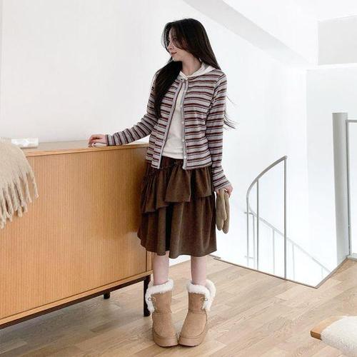 요즘인기 대세템 힙커버 레이어드 끝판왕 3color / 뮤코언발리본미디플레어스커트JCT