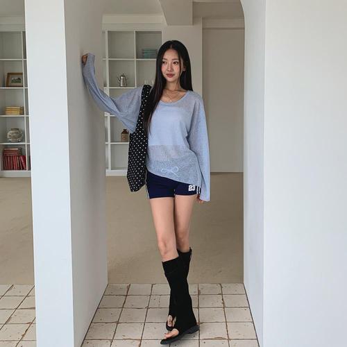 여성 언발루즈 롱슬리브 여름시스루 라운드티