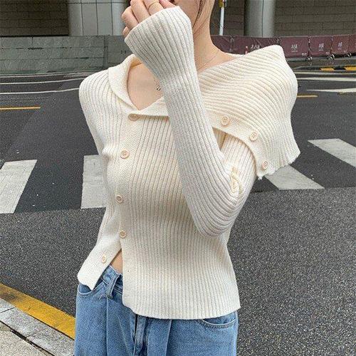 [다잇템]여성 골지 롱슬리브 슬림 언밸런스 티셔츠
