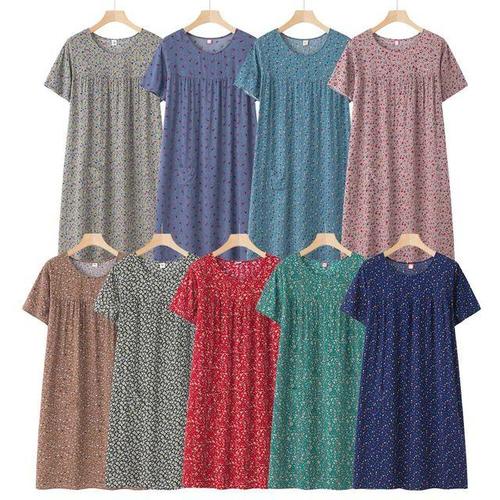 필굿 여성 여자 쿨 냉감 여름 반팔 원피스 잠옷 꽃무늬 꽃가라 엄마 할머니 파자마 홈웨어 이지웨어 실내복
