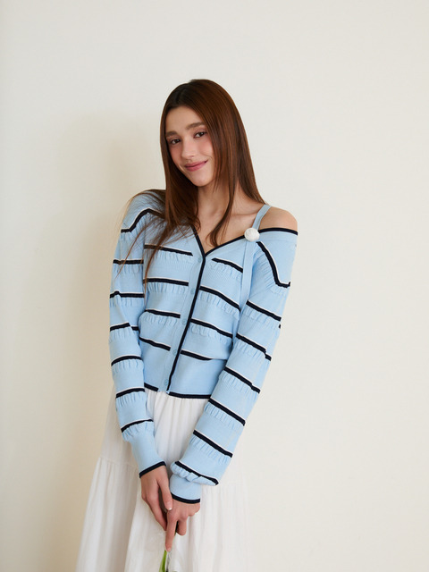 [에고이스트] [BLUE LABEL] 로즈 원숄더 스트라이프 니트 가디건 ES2OKG01