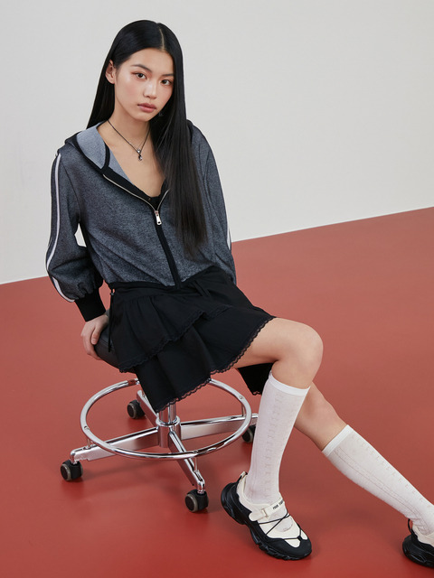 [에고이스트] 자카드 포인트 후드 볼레로 가디건
