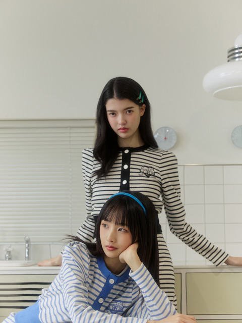 [에고이스트] [BLUE LABEL] 하트자수 스트라이프 크롭 가디건 ER2OCG04