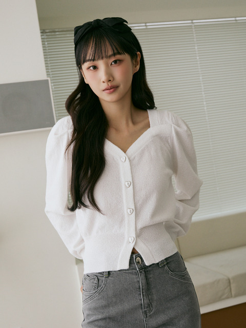 [에고이스트] 하트버튼 포인트 퍼프 가디건