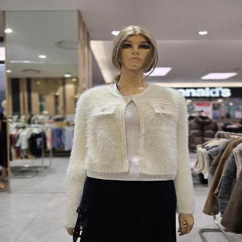 [에고이스트]자카드 포인트 짚업 가디건 화이트 EP2KG560