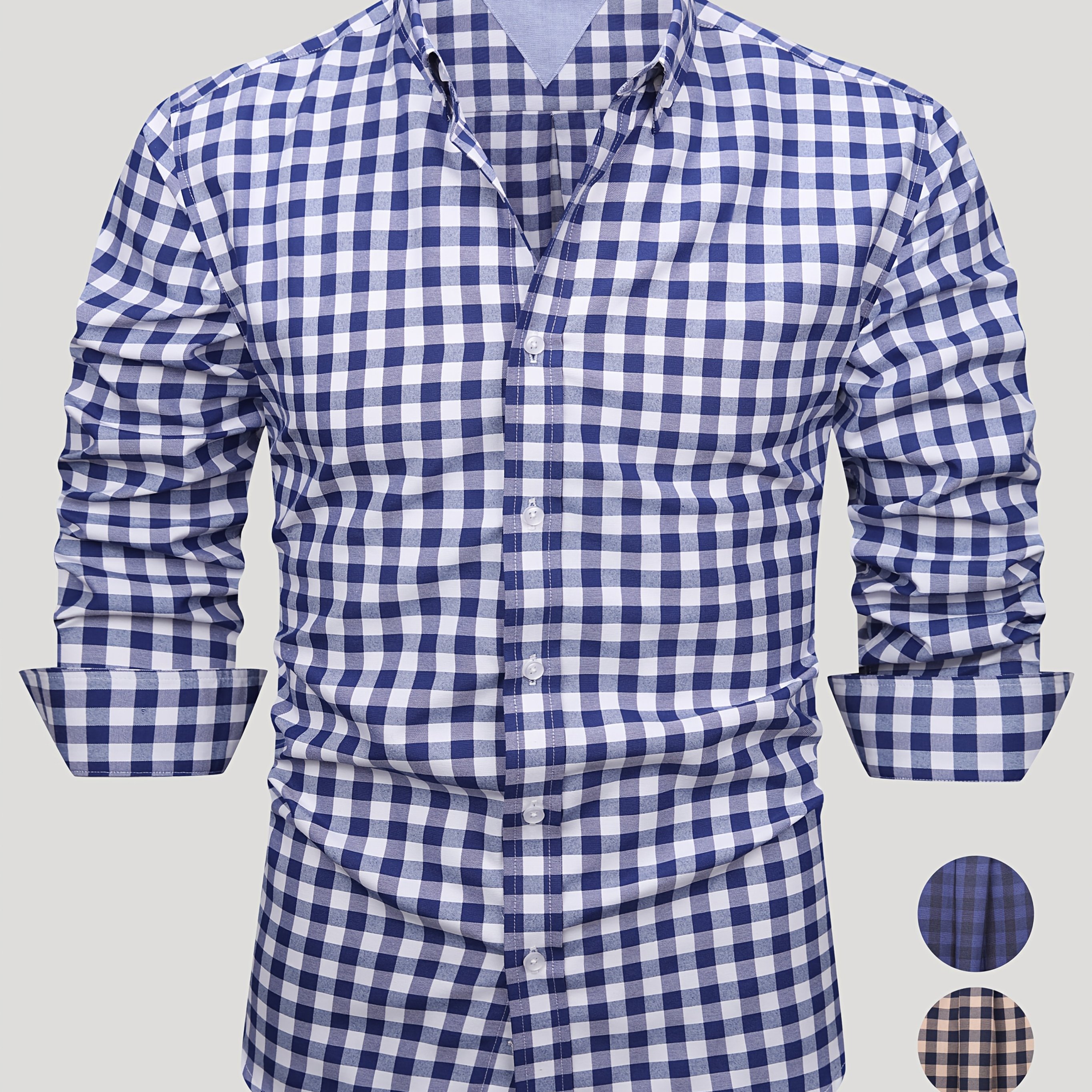 TEMU 남성용 긴팔 패션 체크 캐주얼 셔츠, 100% 폴리에스터 소재, 데일리 아웃팅, 비즈니스 이벤트, 휴가 활동, 데이트 복장에 적합