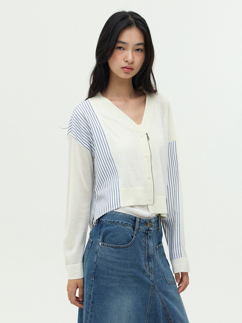 [이비엠 (에디션 바이 미샤)] 스트라이프 V넥 니트 가디건 EMP7KCD020