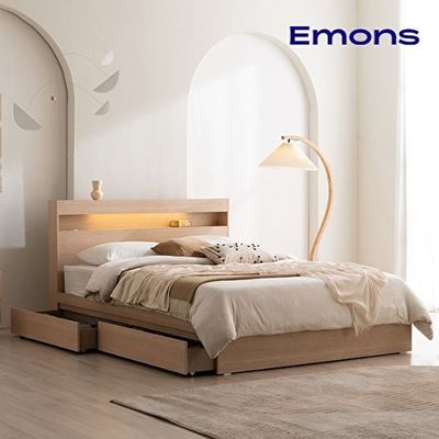 삼익가구 앤더슨 LED 4단 수납 원목 침대 (7존 독립스프링 매트리스-슈퍼싱글)