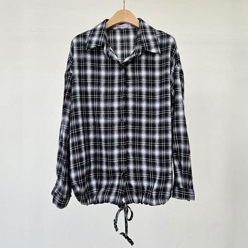 [셀러허브_여성트랜드패션]빅사이즈 510 에반체크스트링카라남방 DIRS858