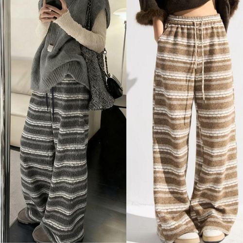 2컬러 에스닉무드 스트라이프 겨울 퍼 니트 롱팬츠 WFLRHRI