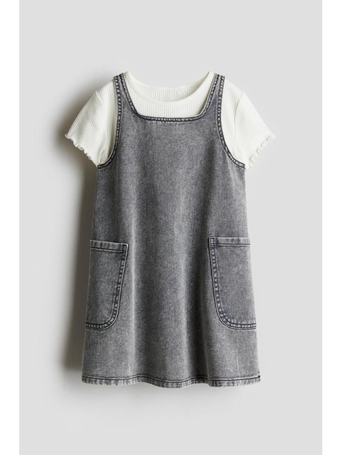 [에이치엔엠] 드레스 & 탑 세트 다크 그레이/화이트 1276419002