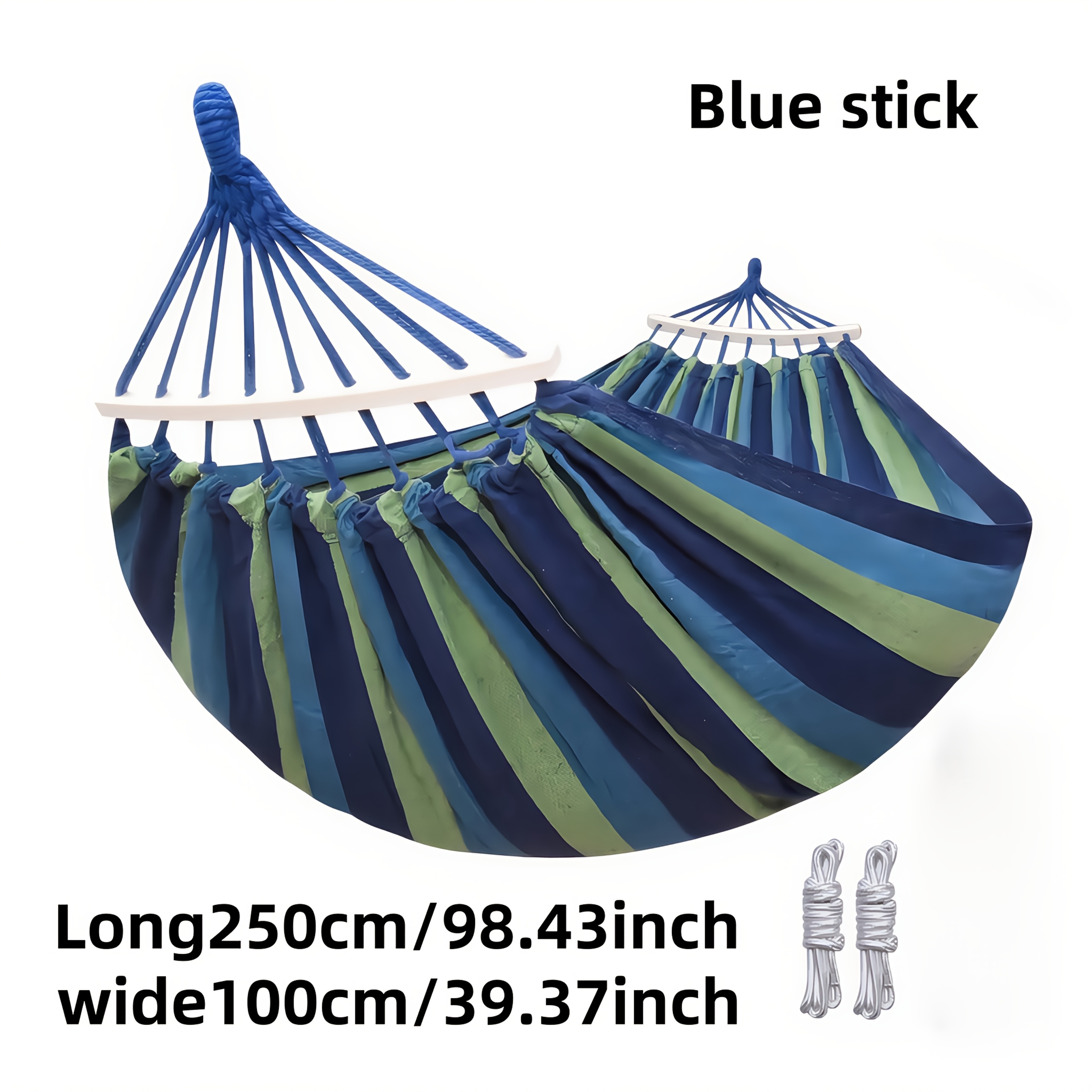 TEMU 야외 휴식을 위한 나무 스틱이 있는 패티오 해먹, 생동감 있는 줄무늬 패브릭 스윙 침대 - 넘어짐 방지 디자인, 2개의 로프 포함 – 마당, 실내 및 캠핑에 완벽, 2인용