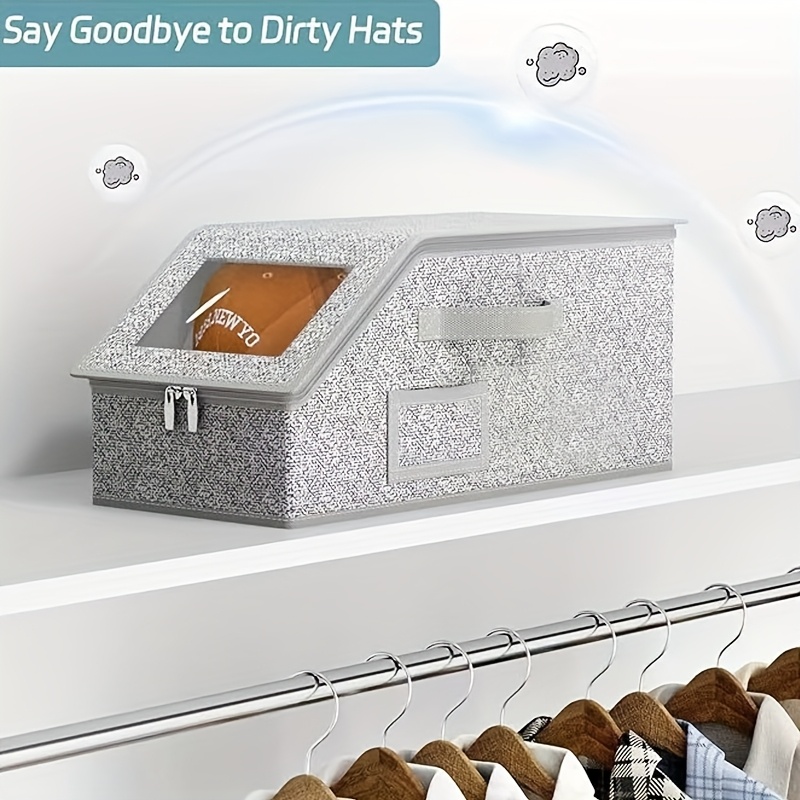TEMU 투명 창문이 있는 대용량 모자 보관 가방 3개 세트, 접이식 디자인 및 튼튼한 손잡이 - 카우보이모자, 야구모자, 해변모자를 위한 각 7개의 모자 수납 가능 – 내구성 있는 다목적 정리함