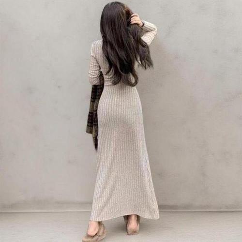 [다잇템_패션]여성 롱 에이라인 오픈 핏 골지 드레스