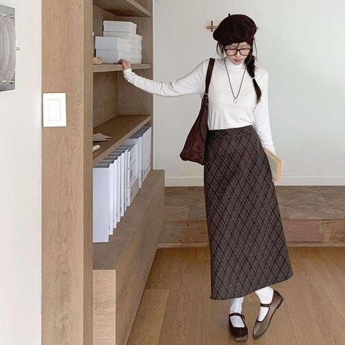 [다잇템][다잇템] 여자 에이라인 패턴 격자 허리밴드 트렌디 롱스커트_23918800_588872
