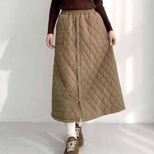 [다잇템][다잇템] 여성 큰주머니 FW 단추 에이라인 누빔 아가일 롱스커트_23918262_588872