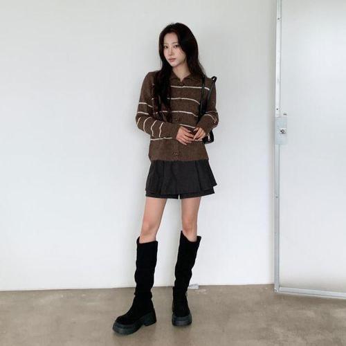 [다잇템][다잇템] 여자 키치무드 에이라인 쁘띠 호피 울혼방 스커트_23768410_588872