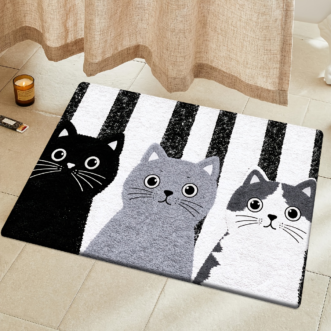 TEMU [제품] [플란넬 + 1cm 두께 스펀지 소재] 재미있는 현관 매트|세 개의 고양이 패턴이 특징인 이 현관 매트는 침실, 주방, 식당, 욕실 등 다양한 환경에 적합합니다. 미끄럼 방지 기능이 있으며 세탁기 사용 가능합니다.