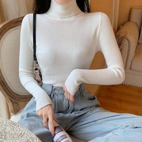니트티셔츠 긴팔 스웨터 여성 반폴라 니트 슬림핏 얇은 무지 하프넥 티