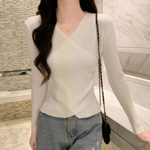 여성 브이넥 풀오버 니트 슬림한 솔리드 컬러 편안하다 니트 뉴타임즈 1121YDM01