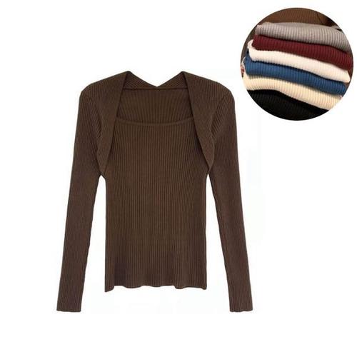 [오너클랜]인기상품 스퀘어넥 여자 골지 긴팔 니트 티셔츠 소프트 슬림핏 [WCB105F_250917]