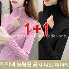 cade konty1+1 여성 가을 겨울 목폴라 골지니트 스웨터 소프트 보온 슬림핏 하이넥 니트 이너티cade konty