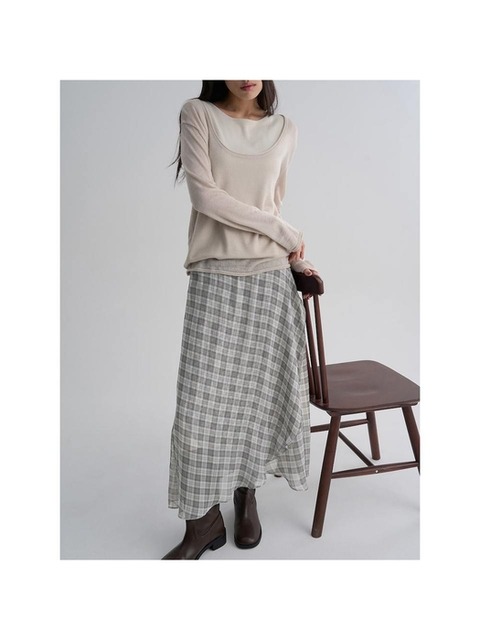 [에잇세컨즈] 시어 체크 롱스커트베이지 (356227WC4A)
